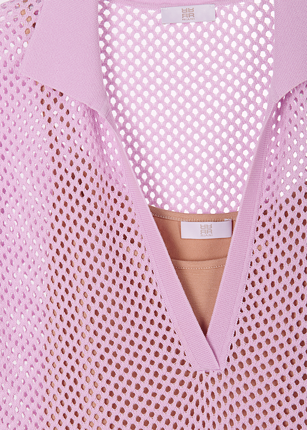 Сукня-поло приталеного крою з сітчастого трикотажу з віскозним ліфом.