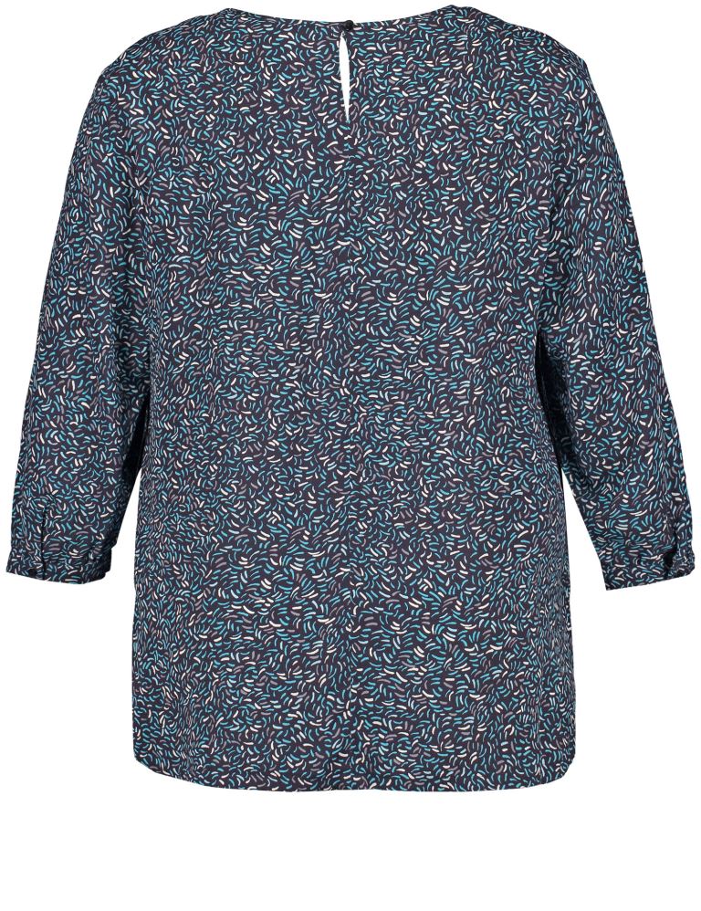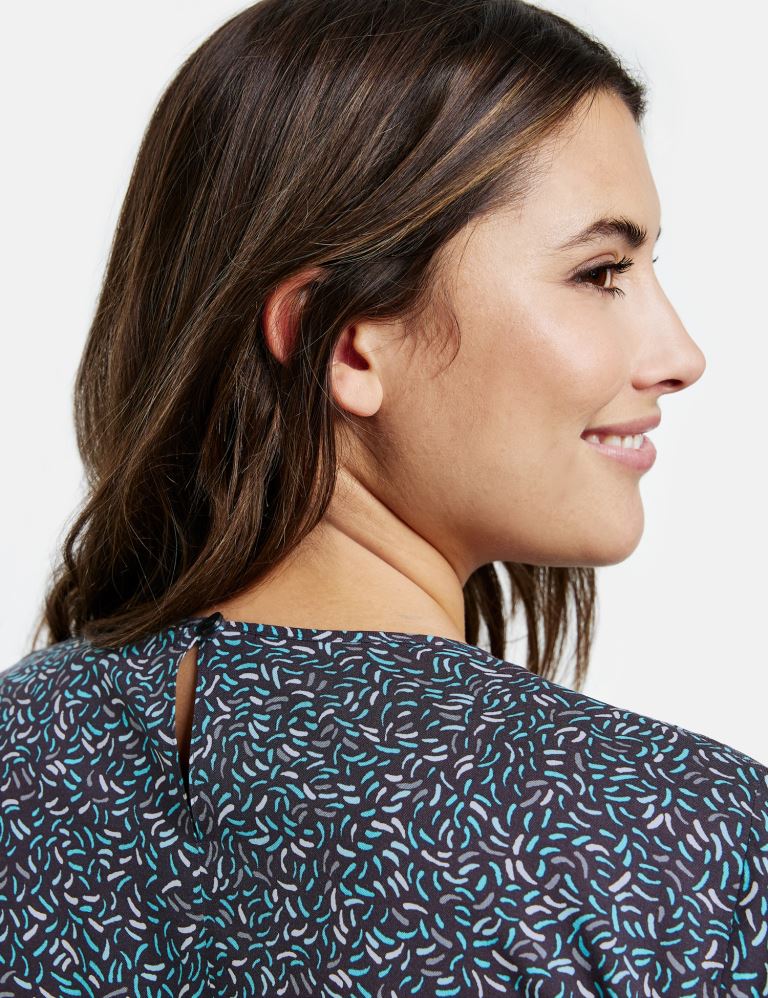 Блуза з мінімалістичним принтом. Завдяки еластичній збірці по подолу ця деталь вільно облягає ваші вигини.