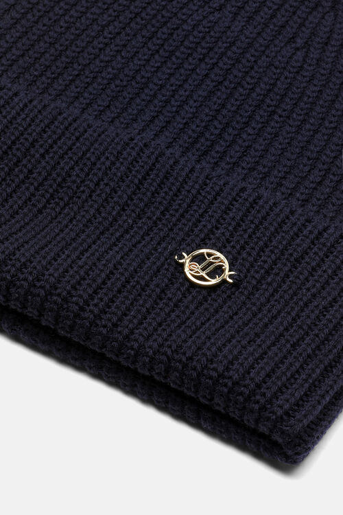 Шапка з чистої натуральної вовни. Шапка має ребристий візерунок, відкладний край і золотисту металеву аплікацію з логотипом «LS».
