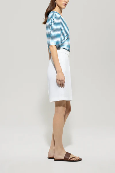 Шорти-бермуди з тонко витканої струмливої суміші льону та віскози з петлями для пояса, двома боковими кишенями та двома врізними кишенями ззаду. Складки додають елегантного акценту.