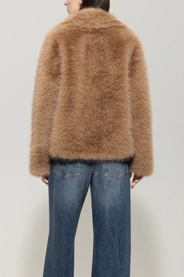 Шуба з теплого, комбінованого штучного хутра з розкішним ефектом лисиці. Дизайн доповнюють комір з лацканами, дві декоративні металеві кнопки та дві приховані бічні кишені.