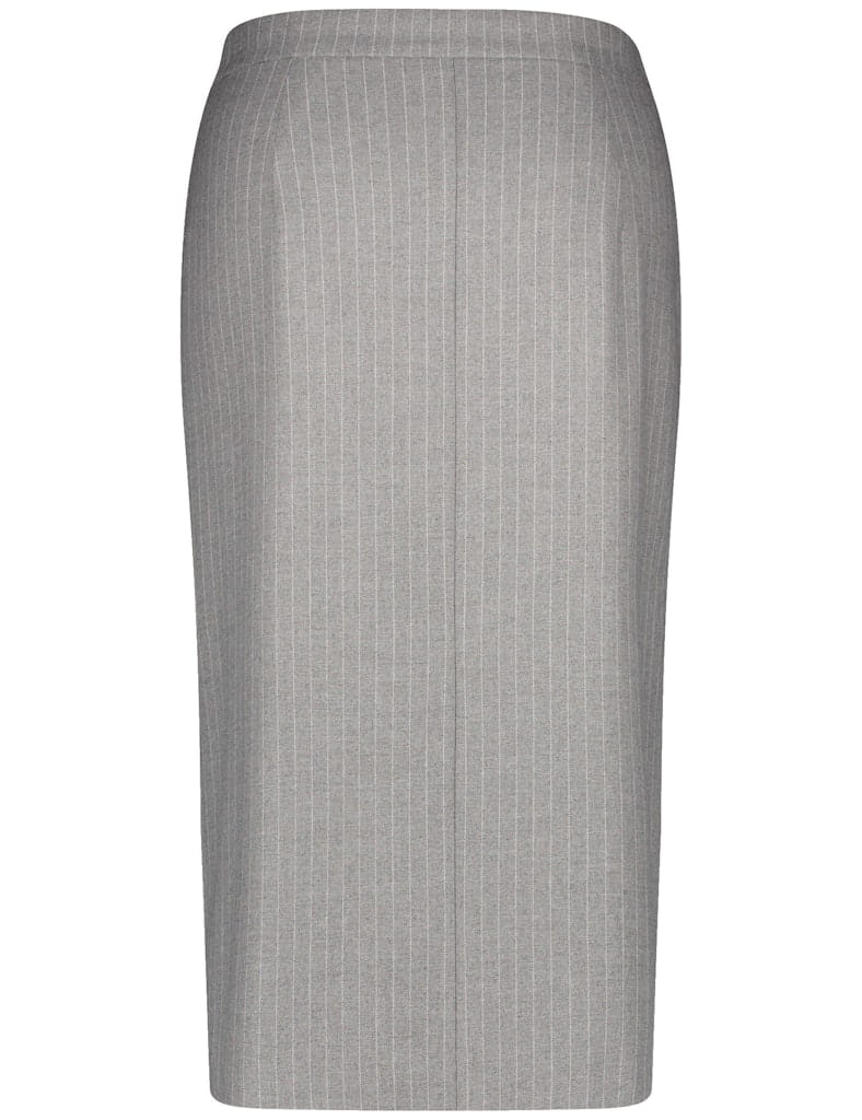 Класична спідниця-олівець у світло-сірому відтінку з тонкою вертикальною смужкою — бездоганний вибір для елегантного ділового образу. Витончений крій підкреслює силует, а стриманий дизайн додає вбранню вишуканості та сучасного шарму.