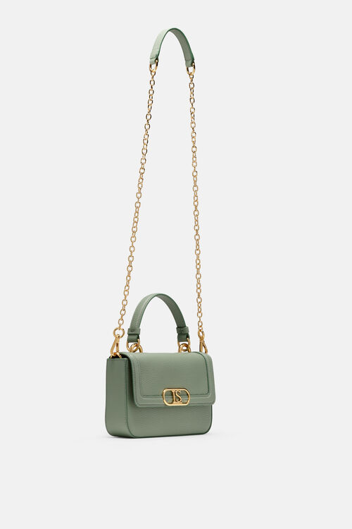 Сумка з натуральної шкіри зі знімним плечовим ремінцем на ланцюжку. Цей клатч має магнітну застібку, відкриту внутрішню кишеню та позолочену металеву пряжку «LS».