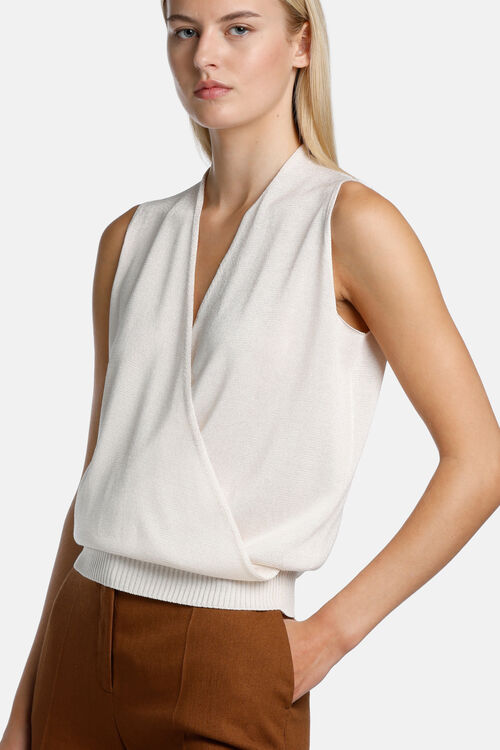 Трикотажний топ без рукавів зі змішаної віскози. Спереду на запах і з ребристим трикотажним подолом.
