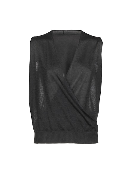Трикотажний топ без рукавів зі змішаної віскози. Спереду на запах і з ребристим трикотажним подолом.