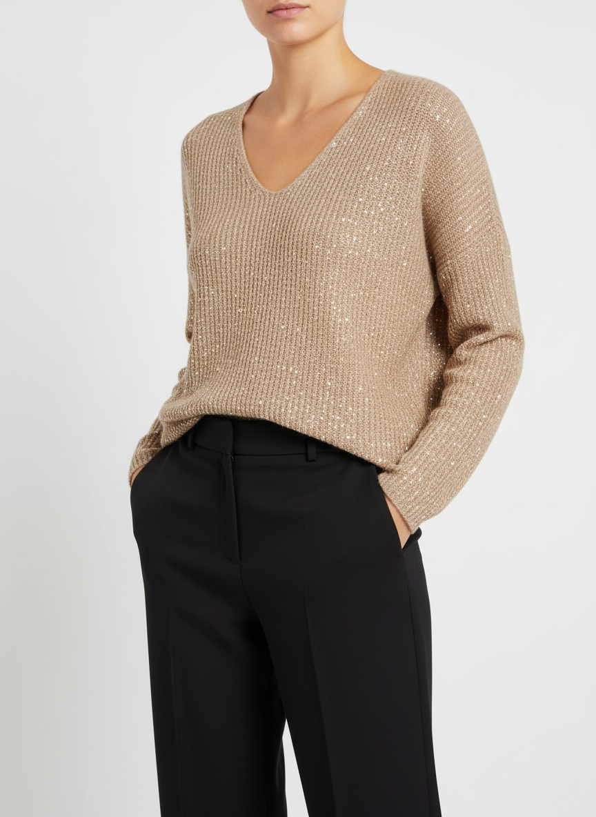 Джемпер Panicale з V-подібним вирізом бежевого кольору