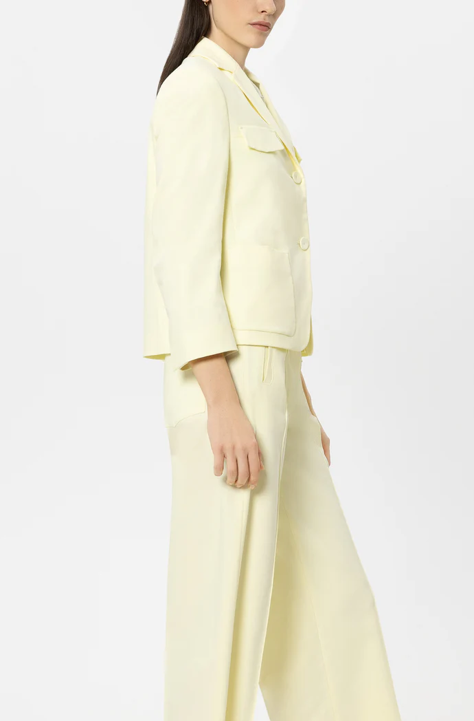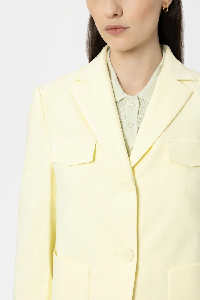 Легкий блейзер із літнього твілу з ефектом стрейчу. Блейзер має вільний, трохи укорочений крій, рукави довжиною ¾, дві накладні нагрудні кишені та дві накладні кишені.