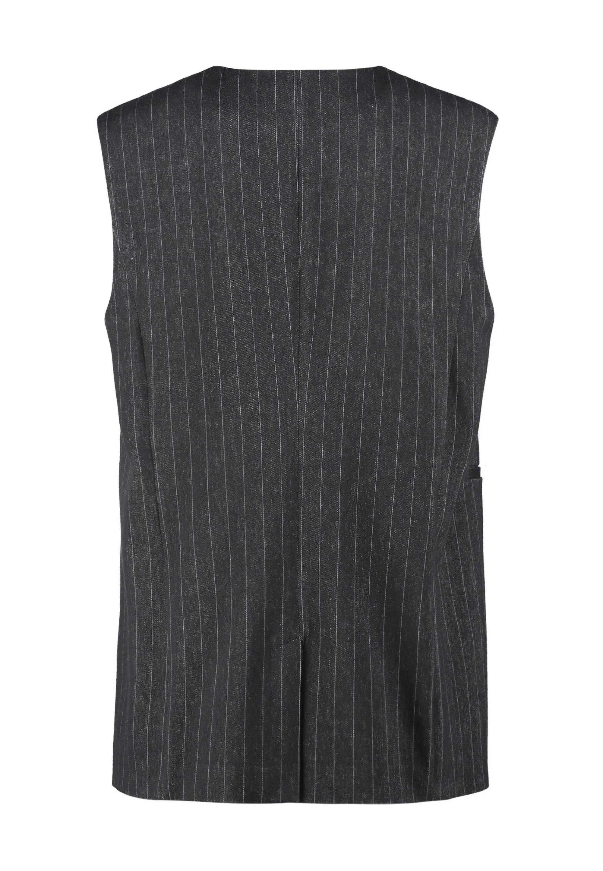 Стильний жилет у тонку світлу смужку — сучасна інтерпретація класики. Прямий крій і глибокий виріз додають образу стриманої елегантності, а мінімалістичний дизайн робить його універсальним елементом гардероба.